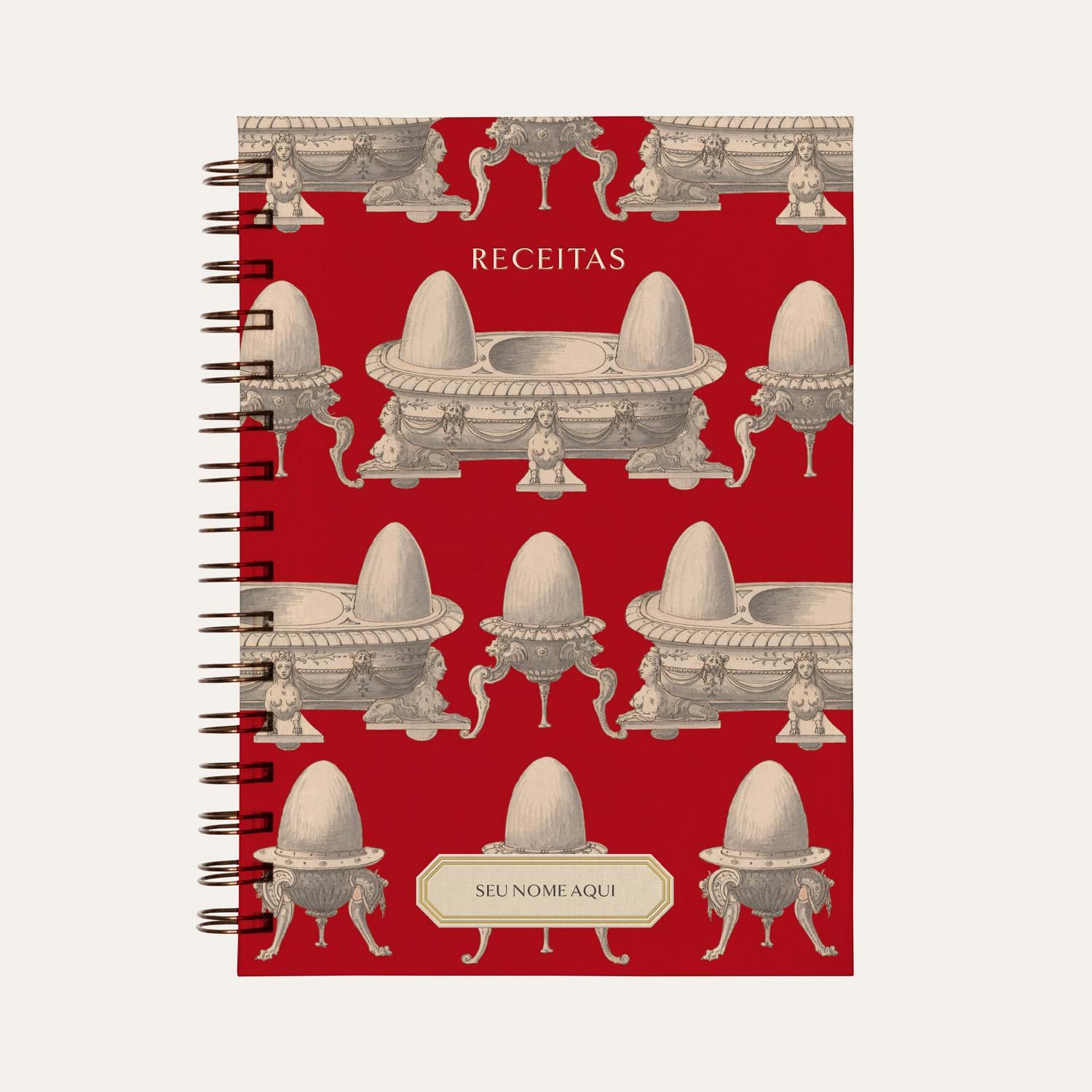 Caderno de receitas personalizado, tamanho A5, com 160 páginas em Papel Polen. Ideal para registrar suas receitas favoritas.