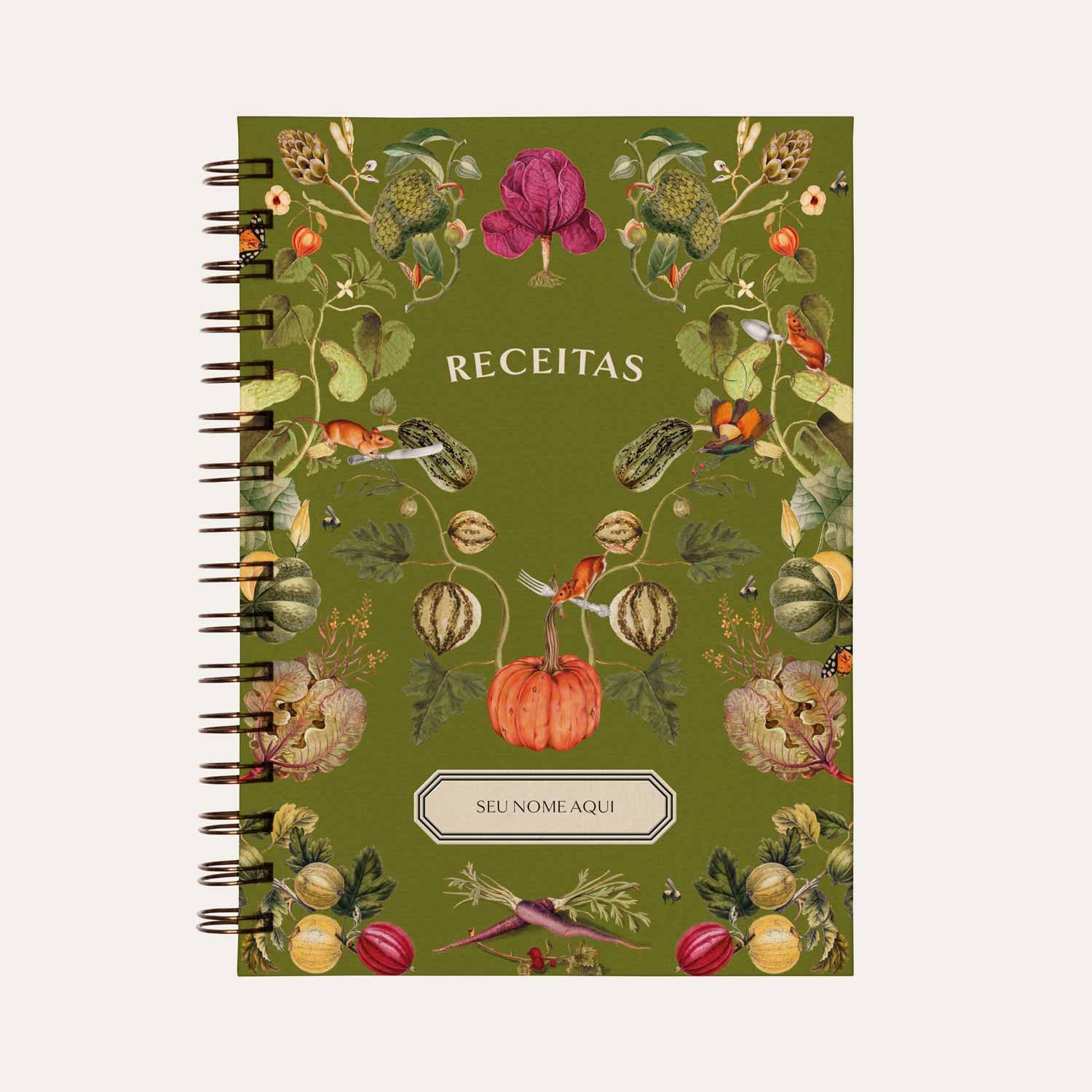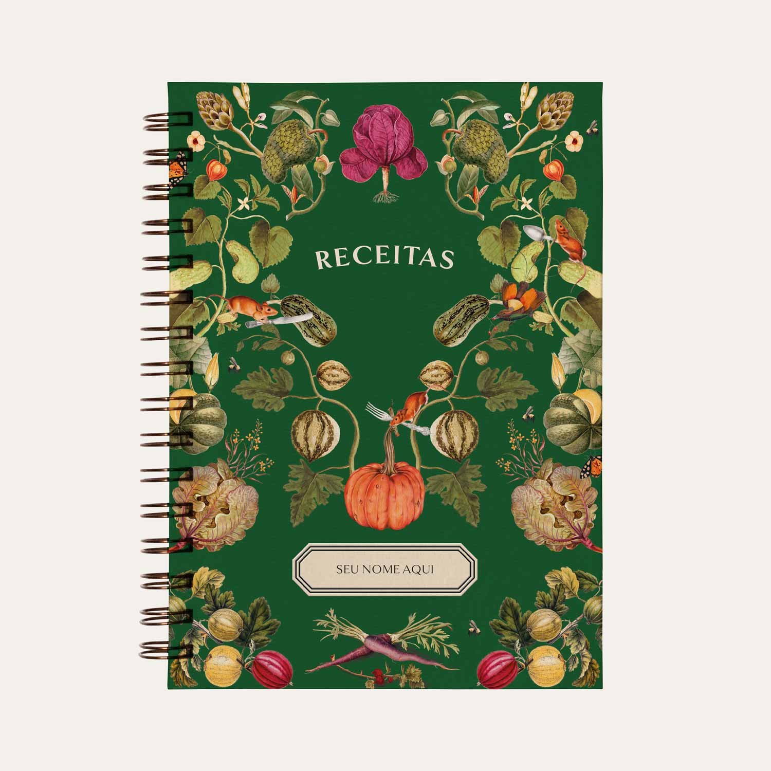 Transforme suas memórias culinárias em um legado com nosso caderno de receitas personalizado com ilustração botânica de horta Este livro de receitas é o presente perfeito para amantes da cozinha que desejam guardar e compartilhar suas criações culinárias e receitas de família.
