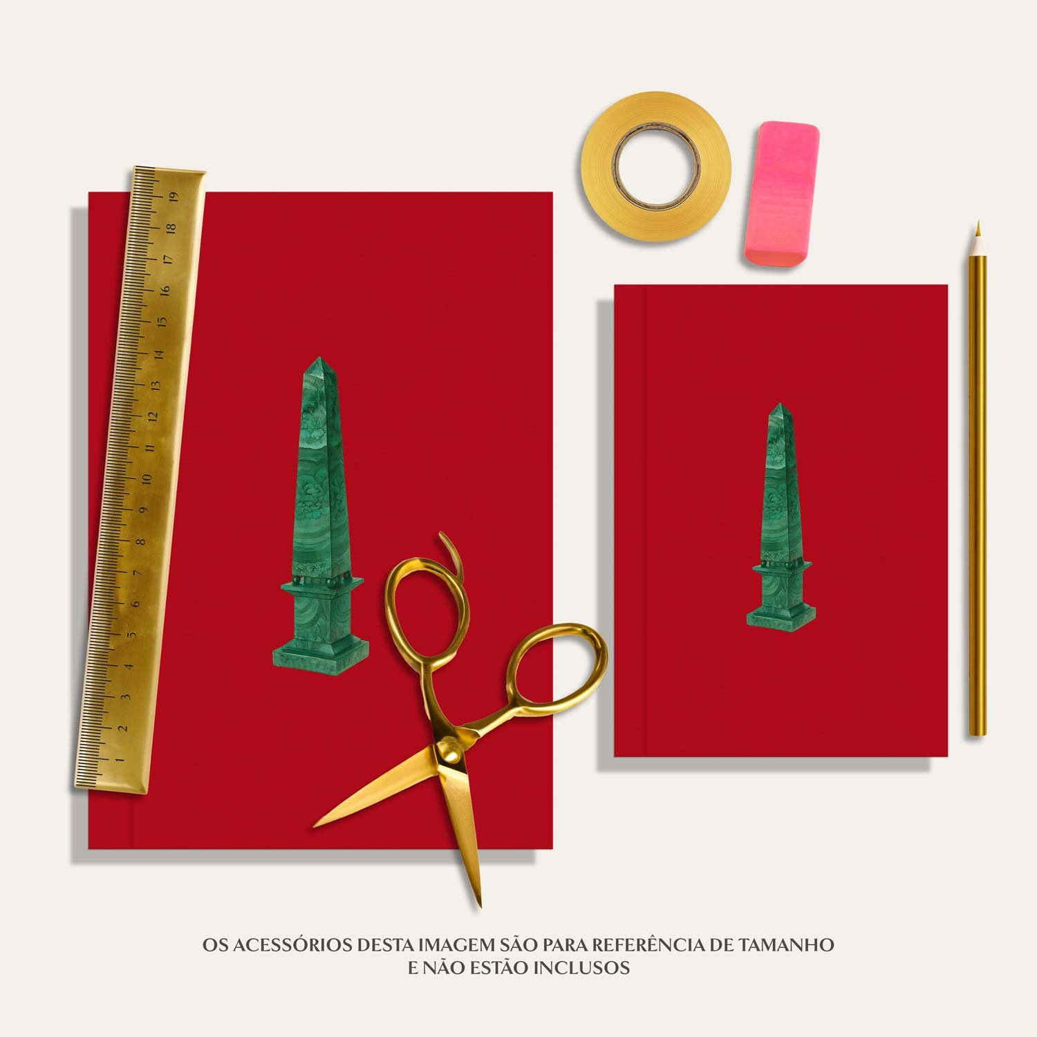 Caderninho de brochura em capa mole, com ilustração de obelisco, no tamanho A6 ou A5. Interior com 90 páginas em branco feitas em Papel Polen.