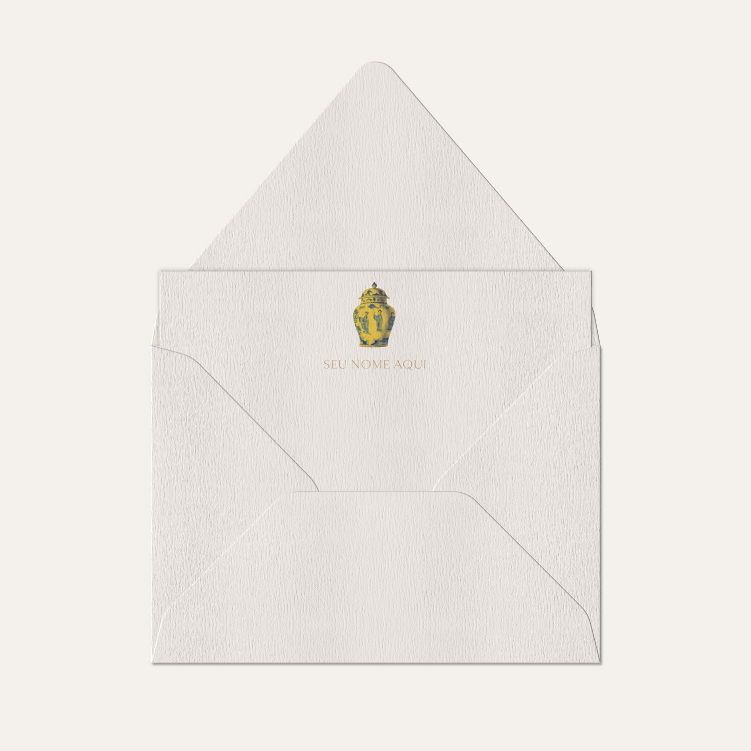 Descubra a elegância e a qualidade do nosso cartão personalizado, feito com papel italiano, suave ao toque e ideal para escrever. Este conjunto contém 8 cartões sociais em ilustração de potiche em collab com Carlos Reichmann e 8 envelopes coloridos à sua escolha, proporcionando uma experiência de papelaria personalizada única.